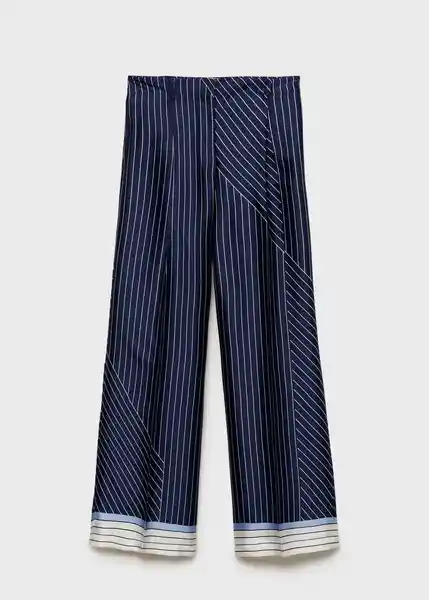 Bolsillos Laterales Cierre Delantero de Botón Gancho y Cremallera Ocultos Con Tapeta Cintura Con Goma Elástica Detalle de Pinzas Diseño Largo Diseño Recto Estampado de Rayas Tejido Fluido Con Acabado Satinado Total Look Trabillas - 87087193_52.