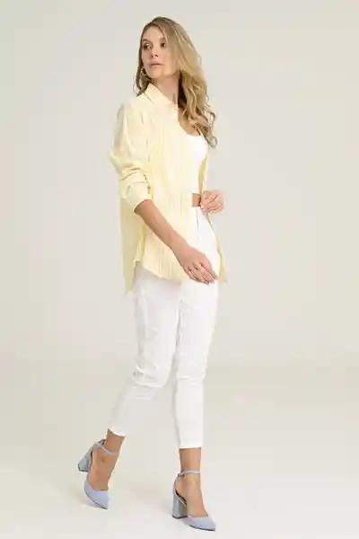 En Dril Fondo Entero Tiro Alto Silueta Bolsa de Papel Botón Interno Charreteras en Pretina Ribetes en Posterior Cierre Frontal Prenses en Delantero Bota Recta.