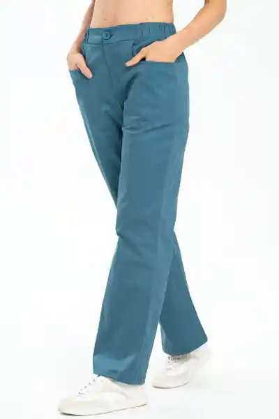 En Dril Fondo Entero Elástico en Pretina Posterior Botón y Cierre Frontal Tiro Alto Bolsillos en Costados Bota Ancha.