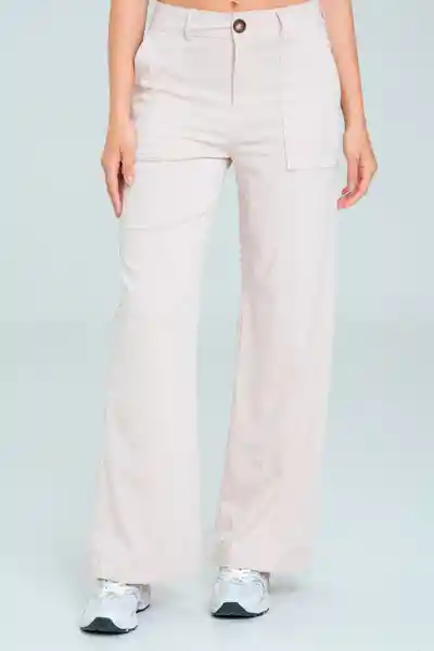 En Chalis Con Licra Fondo Entero Tiro Alto Ajustado Con Botón de 36 L y Cierre de Nylon Tono a Tono Bolsillos de Parche en Frente y Posterior Bota Recta.