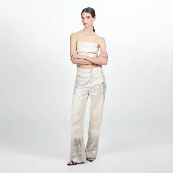 Pantalón Bota Recta Con Foil Brilla Con Este Pantalón! Este Pantalón de Bota Recta Con Detalles de Foil es Perfecto Para un Look de Noche.