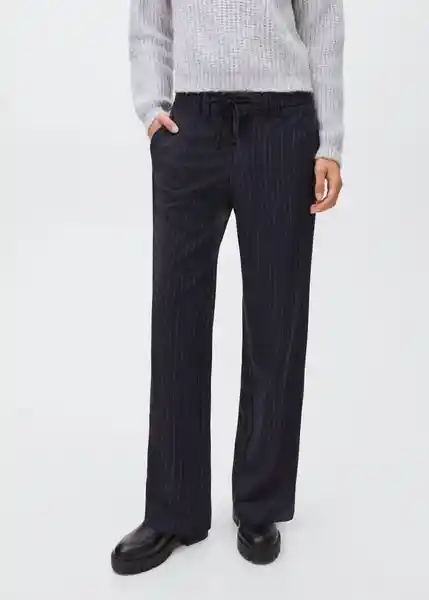 Cintura Elástica Con Cordón Diseño Largo Dos Bolsillos Laterales Estilo Traje Tejido de Rayas - 17056337_56.