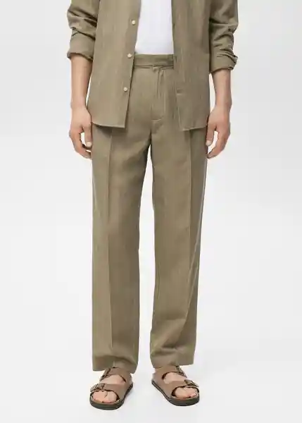 Bolsillos Laterales Cierre Doble Botón y Cremallera Detalle de Pinzas Delanteras Diseño Raya Diplomática Dos Bolsillos de Ribete Con Botón en la Parte Posterior el Modelo Mide 190 cm y Lleva Una Talla 42 Regular Fit Tejido Mezcla de Lino y Lyocell Trabillas Para Cinturón - 87035918_37.