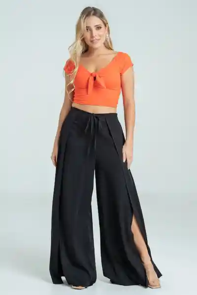 En Tejido Plano Fondo Entero en la Parte Delantera Tipo Pareo Anuda Con Tiras en Centro Frente Elástico de 5 cms en Pretina Trasera Bota Amplia Silueta Tipo Palazzo.