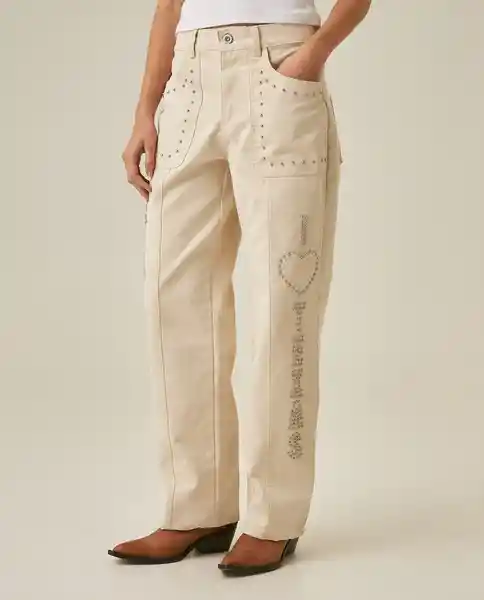 Western Femenino Cápsula Rodeo Silueta Recta Tiro Alto en Algodón 100%. Pretina Con Botón de Golpe y Pasadores. Bolsillos de Parche Delantero y Posterior. Corte Vertical en Frente. Taches (Studs) en Bolsillos y Costados. Denim Claro Con Textura Afelpada (Denim Pitch). Gráficos al Frente Hechos Con Studs. Construcción Western Con Studs Decorativos. Silueta Recta. Ean- 731H700Cru110606 Plu- 1111133241693.