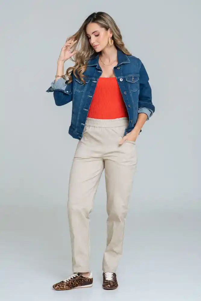 Pantalón en tejido plano pique, pretina resortada, corte en pierna y bolsillos en costados, silueta harem.