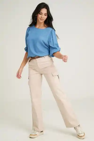 Dril Fondo Entero Pretina Con Pasadores y Botón Cierre Frontal Bolsillos Diagonal Bolsillos Parche Posterior y Costados Bota Recta.