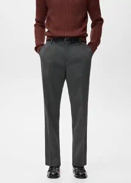 Cierre Delantero de Cremallera y Botones Detalle de Pinzas Delanteras Dos Bolsillos Laterales Regular Fit Tejido de Franela Tejido Mezcla de Lana Trabillas Para Cinturón - 27011200_96.