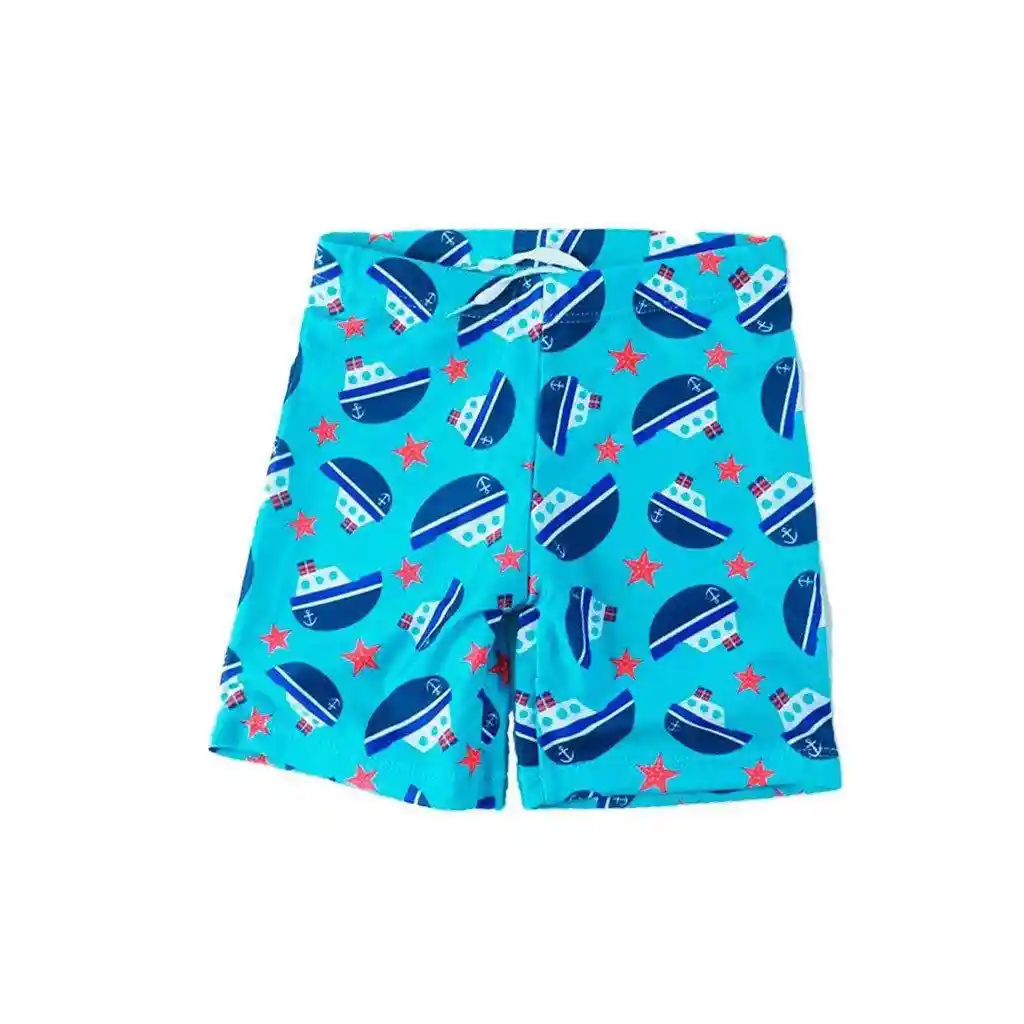 Pantaloneta baño azul clara con estampado de barcos para niños de 3 años. Con protección UV, ideal para los días de verano con tu chiquito.