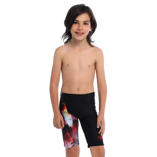 Masculino. Descubre la Pantaloneta de Baño Jammer V-Cut Fright Island Junior Masculino de Speedo! Diseñada Con Los Más Altos Estándares Calidad Para Brindar Comodidad y Estilo Esta Pantaloneta Jammer Para Para Niños de 6 a 14 Años Con Diseño Multicolor Moderno Con Palmeras y Calaveras en el Lado Derecho y Acabado Sólido Negro Con Logo Speedo Rojo en la Parte Inferior Izquierda un Diseño Que le Encantará. Confeccionada Con Corte V Silueta Ajustada y Pretina Lisa Con Elástico Para un Ajuste Perfecto Esta Pantaloneta de Baño Está Especialmente Diseñada Por Speedo Para Brindarle Libertad de Movimiento Mientras se Divierte en el Agua. Su Tela Ligera y Suave y Forro Interno en la Parte Superior Delantera Garantiza Una Experiencia de Uso Cómoda y Sin Restricciones Perfecta Para Momentos Juego y Esparcimiento en la Piscina o en el Agua. Detalles- Pantaloneta Larga Jammer.- Forro Interno en la Parte Superior Delantera.- Pretina Lisa y Elástica Con Cordón de Ajuste.- Silueta Ajustada.