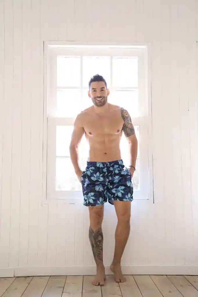 pantaloneta de hombre negra con hojas azules talla 34 (m) Traje de baño hombre