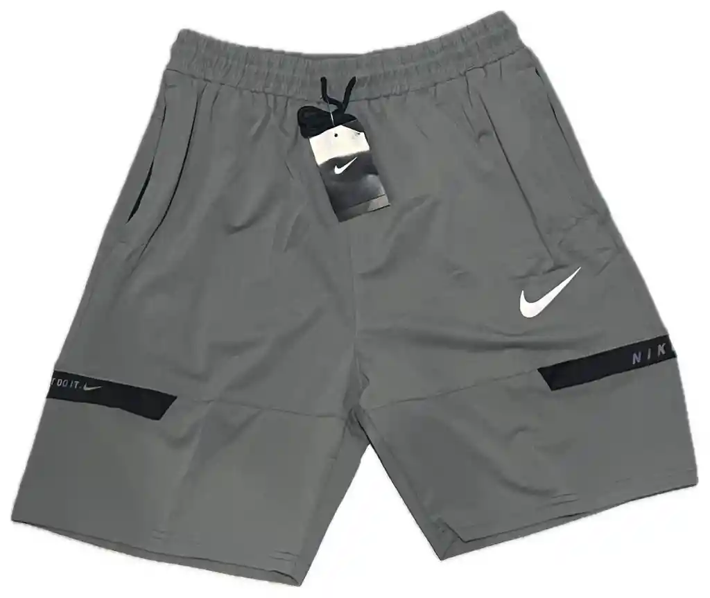 Pantaloneta replica hombre, color gris, talla XL, con cremalleras en los bolsillos, sin forro interno