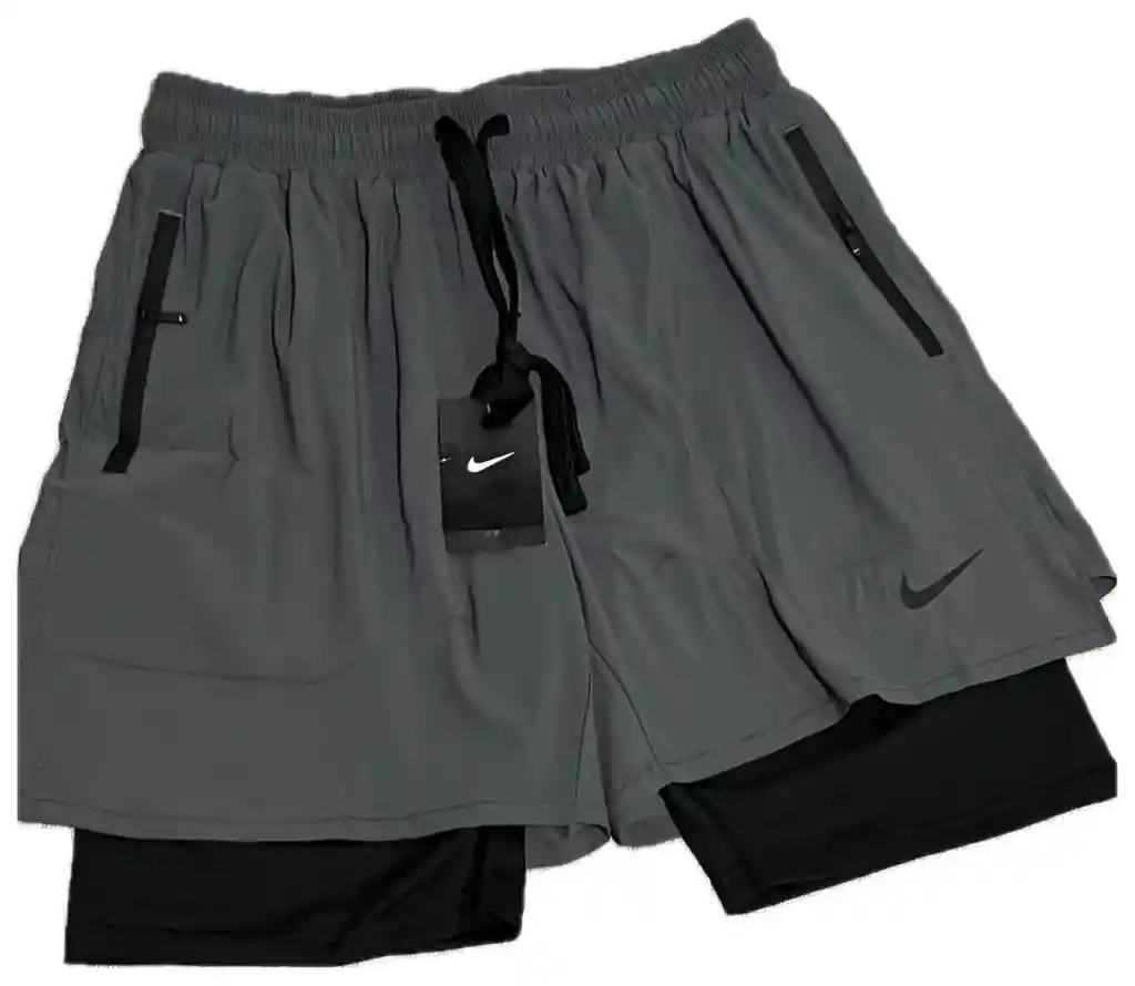 Pantaloneta deportiva hombre, material impermeable con licra interior, cremallera en los bolsillos color gris, talla L