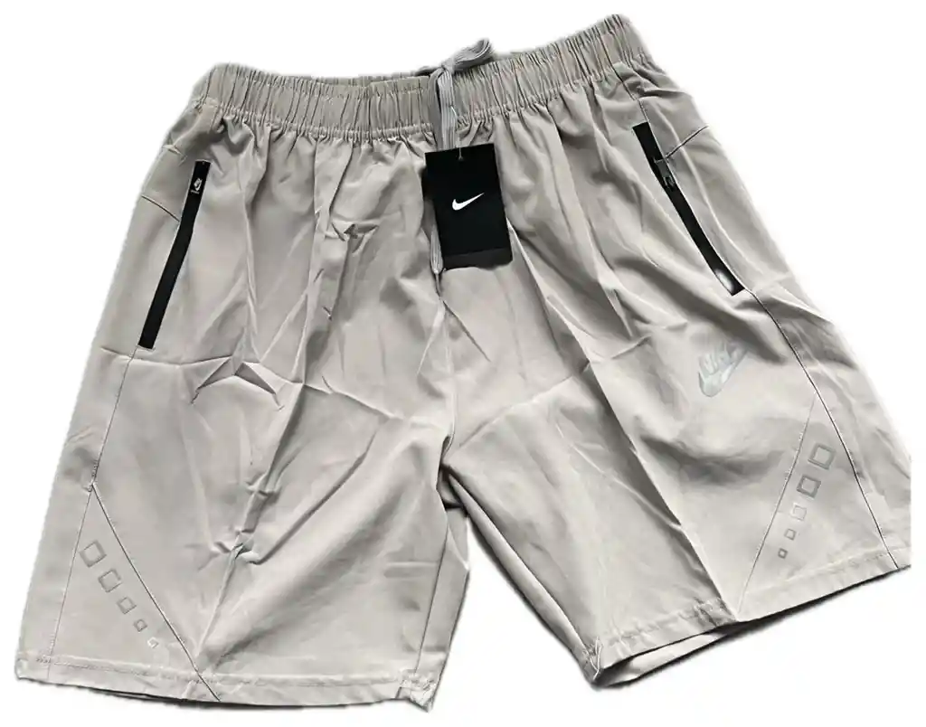 Pantaloneta deportiva hombre 1:1 , color beige, talla XL, con cremallera en los bolsillos.