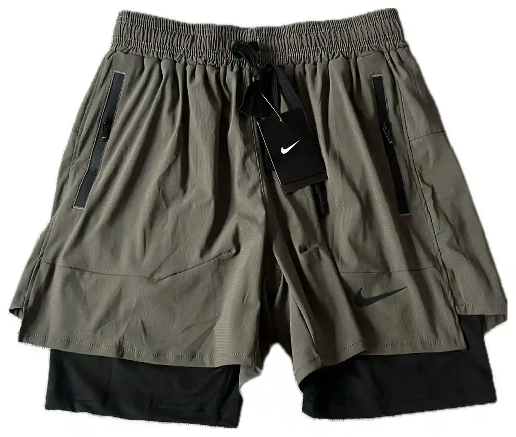 Pantaloneta deportiva hombre 1:1 , color verde, talla M, con cremallera en los bolsillos Y libra interna.