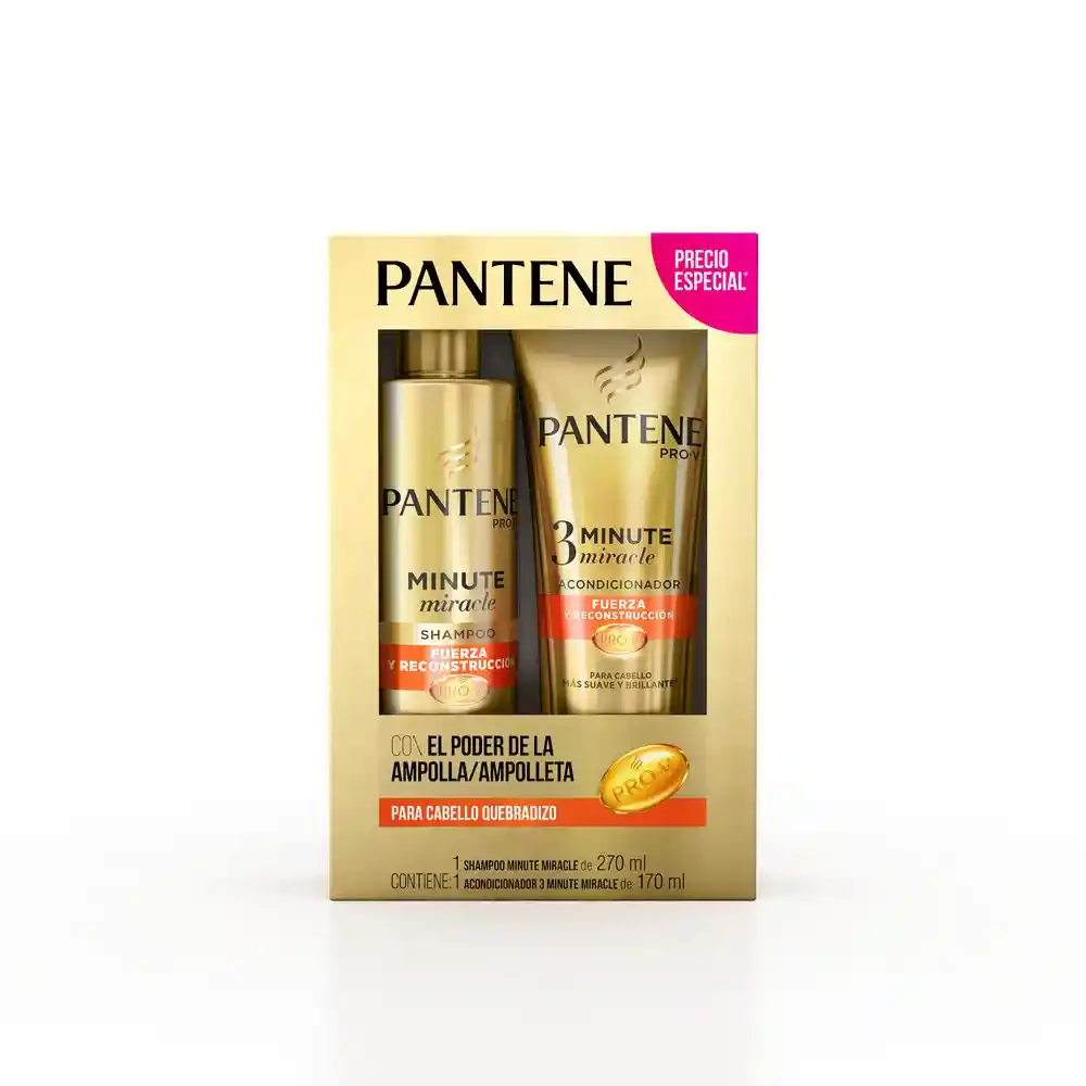 Shampoo fuerza y reconstrucción minute miracle reforzado con el poder de la ampolla, ayuda a reparar para un cabello fuerte y resistente contra él quiebre. El shampoo minute miracle de pantene es el único shampoo que refuerza la fórmula con pro-vitaminas con el poder de la ampolla, en una fórmula de oro patentada que brinda un sistema que va más allá de la limpieza y que deja el pelo nutrido, suave, 100% más fuerte y sin frizz desde la raíz. packing: Caja