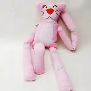Hoy a llegado a ti un nuevo amigo, ese que te acompañó en tu infancia y que aún sigue vigente. Estamos hablando de la famosa Pantera Rosa Bordada 100% a mano con mucho amor. Cómprala para ti o para regalar a una persona especial como tu hij@ o pareja. Características: Animalito de trapo, bordado 100% a mano, en tela antialérgica y relleno con algodón poliéster. Mide 45 cm de largo, tiene brazos largos para abrazar.. Los animalitos de trapo se deben lavar con un jabón suave y secar a la sombra. Puedes personalizarlo agregando un mensaje corto o un nombre en la parte de atrás. Debido a que los animalitos son hechos 100% a mano algunas características como colores o formas en el bordado pueden variar.