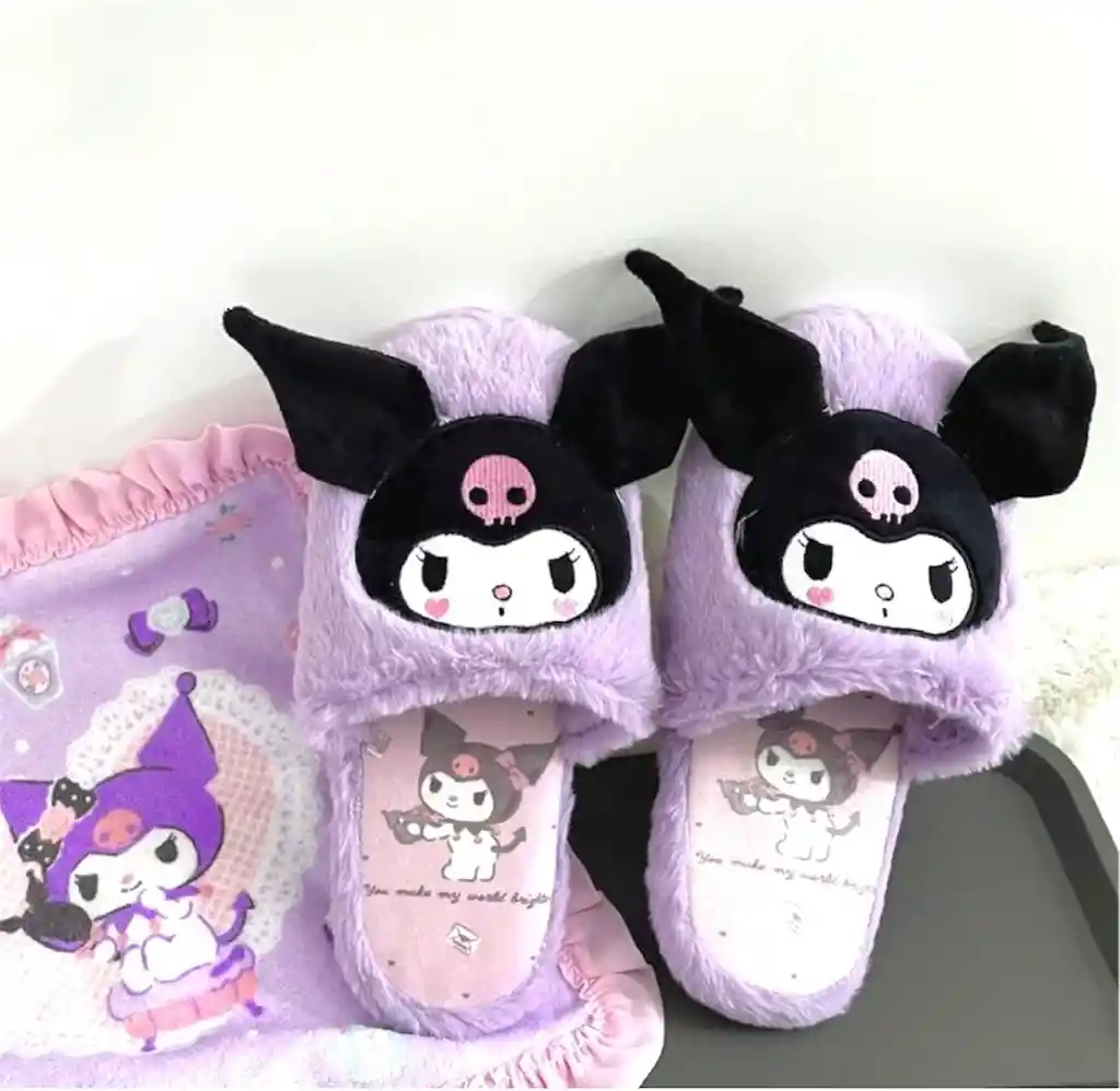 Pantuflas Kuromi • Talla única: se recomienda para talla entre 35 - 39 en calzado • Material: felpa • Suela antideslizante *Debido a factores como la luz y las pantallas, existen ligeras diferencias entre el producto y la imagen*