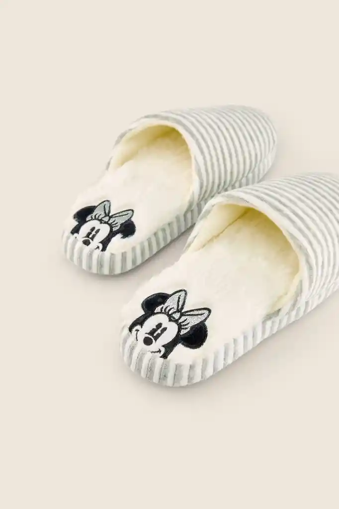 Pantuflas Grises Lineas Minnie Talla M