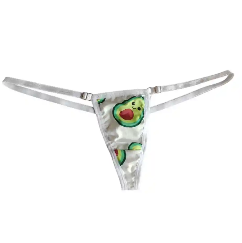 Panty Tanga Calzón Pantie color Blanco con diseño de Aguacate. Hermoso Panty, calzon o tanga, blanco con lindo diseño de aguacate, Talla única con tiras delgadas ajustables, ajusta desde la Talla 6 hasta la Talla 10.