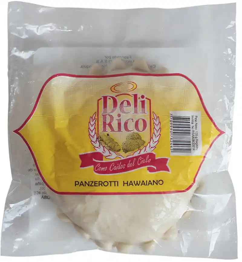 Panzerotti congelado de 135g con salchicha tipo ranchera y queso tipo mozzarella.