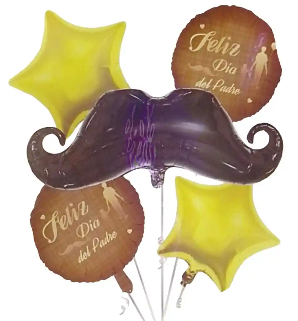 Bouquet De Globos Cohete X5 1 Globo mostacho 2 Globo Metalizados estrella doradas 18´´ 2 Globos Metalizados Redondos 18´´ 🎈 Importante: Los globos se entregan desinflados. Si deseas un inflador manual o inflar tus globos con helio, contáctanos en el chat para agregarlo con un costo adicional.