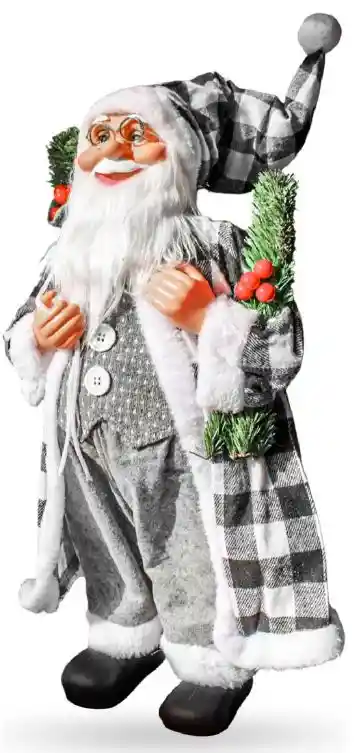 Transforma tu hogar en un espacio lleno de magia con este Papá Noel Decorativo Premium de 60 cm, diseñado para resaltar cualquier ambiente con su estilo elegante, moderno y altamente realista. Su ropa en tonos grises, detalles tejidos y accesorios festivos lo convierten en un adorno perfecto para salas, entradas, vitrinas, oficinas y árboles de Navidad. Fabricado con materiales resistentes, colores nítidos y acabados de alta calidad, este Noel está pensado para acompañarte cada temporada navideña sin deteriorarse. Su estructura firme permite colocarlo en cualquier superficie de interior o exterior protegido. Ideal para quienes buscan una decoración navideña sofisticada, moderna y duradera. BENEFICIOS PRINCIPALES Diseño realista y elegante Su expresión detallada, gafas metálicas y acabado premium elevan la decoración navideña. Perfecto para cualquier espacio Decora salas, entradas, habitaciones, oficinas, vitrinas, locales comerciales y recibidores. Material resistente y de larga duración Estructura plástica firme, tela suave y detalles de alta calidad para uso por años. Tono neutro moderno El diseño en blanco, gris y cuadros tipo “buffalo check” combina con árboles blancos, grises, plateados o tradicionales. Listo para exhibir No necesita armado y se mantiene estable en cualquier superficie.