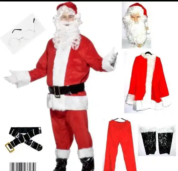 Talla Única Incluye: Vestuario completo Cubre botas Peluca y Barba Lentes