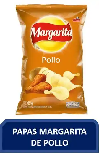 Disfruta del sabor inconfundible de las Papas Margarita Pollo, las favoritas de los colombianos. En su práctica presentación de 105 g, son perfectas para compartir en reuniones pequeñas o como el snack ideal para ver una película. Hechas con papas 100% colombianas.