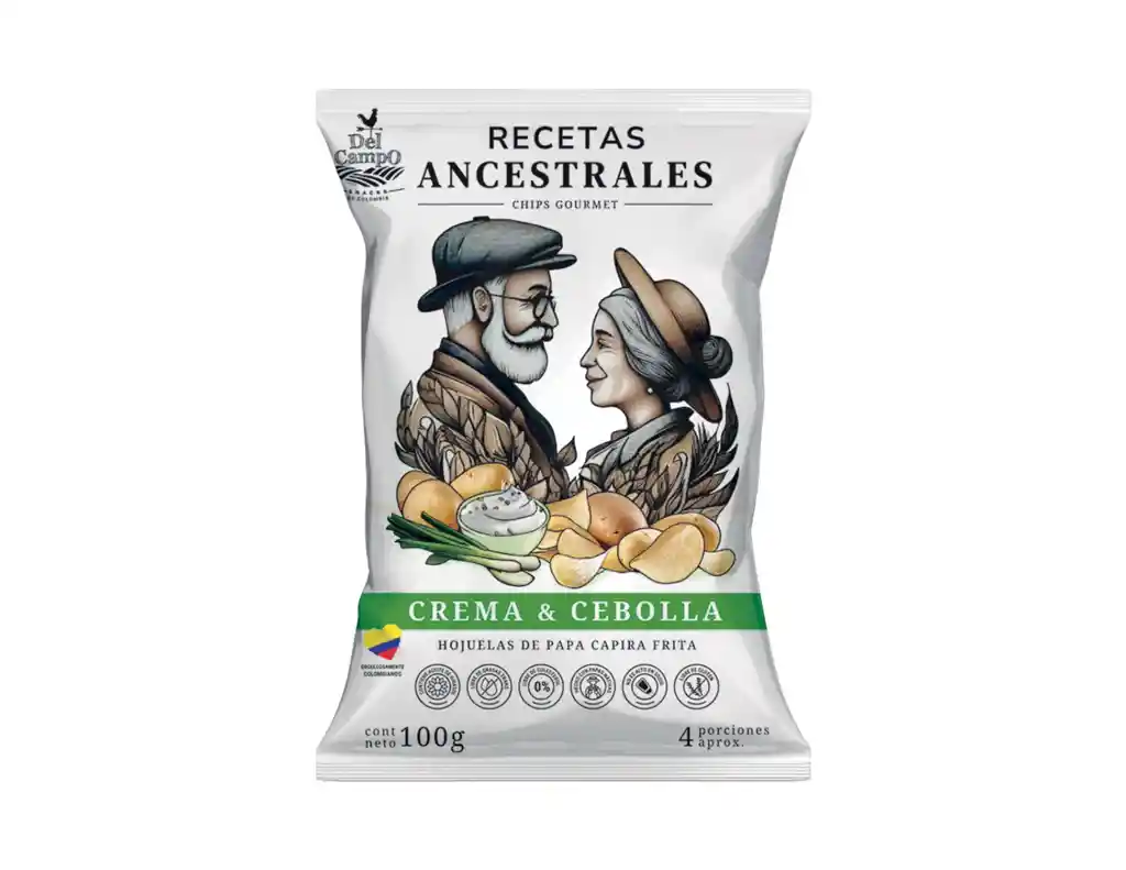 Papas Del Campo sabor CREMA Y CEBOLLA Snack crujiente de papas capiras colombianas, frito en aceite de girasol 🌻. Producto 100% colombiano 🇨🇴 Sin sellos ✅ Vegano 🌱 Libre de gluten 🚫🌾 Libre de grasas trans