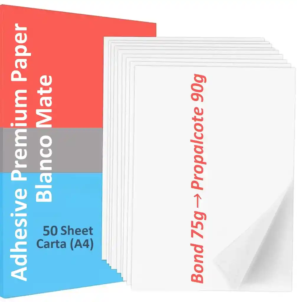 ● Tamaño: Carta A4 ● Número de hojas: 25 ● Textura: Blanco Mate ● La cara de impresión es bond de 75 gramos ● El sticker es propalcote de 90 gramos ● Ideal para impresión Inkjet y láser