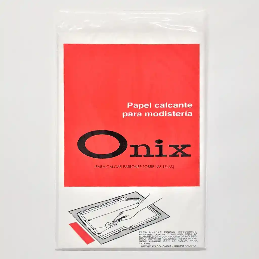 Papel calcante Onix para modistería, para calcar patrones sobre telas Contiene 10 hojas (blancas, naranjadas, azules, rojas).