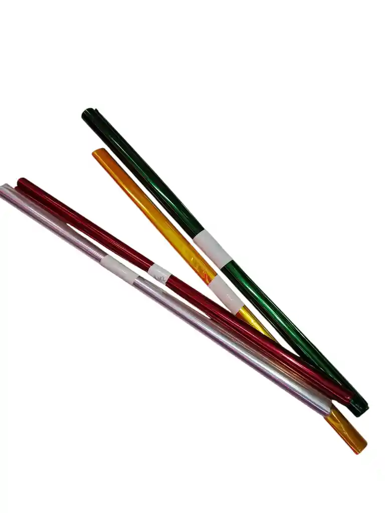 Paquete de 20 pliegos de papel celofán de 100cm. X 70cm. En colores amarillo, verde, rojo y transparente ideal para empacar regalos.