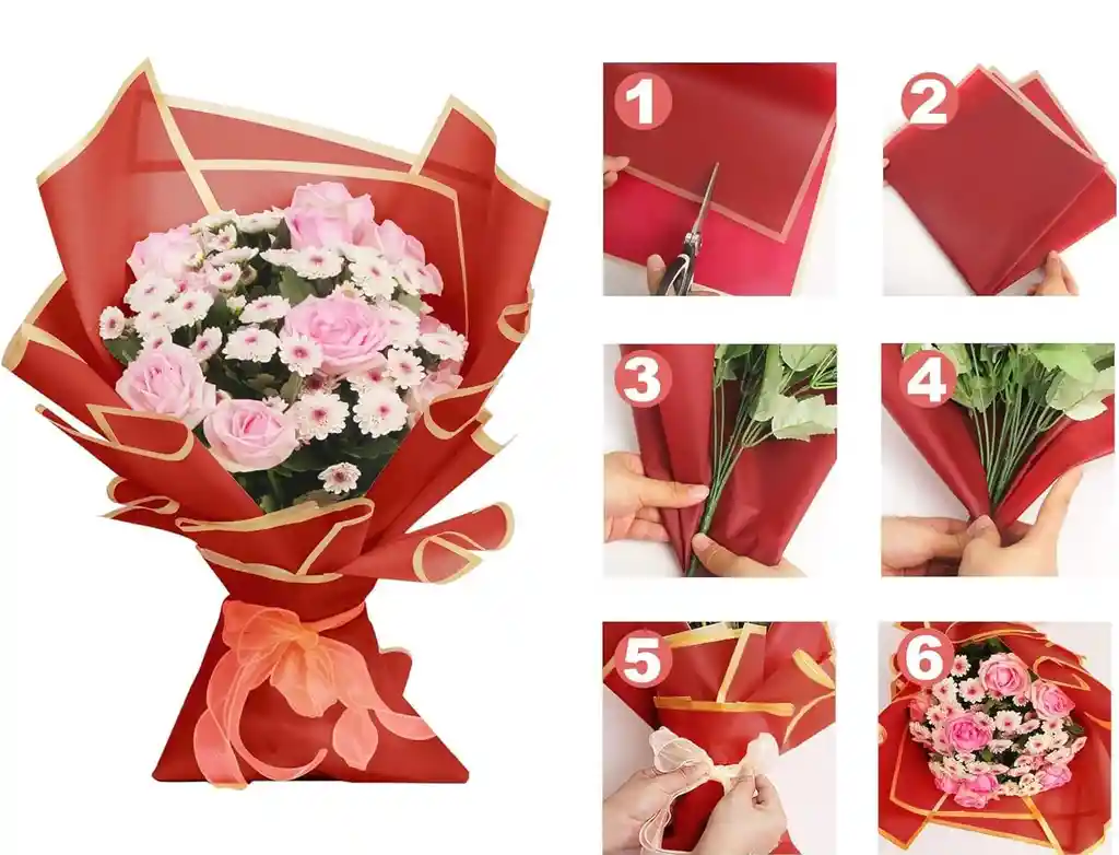 Usos Comunes El papel coreano es un material muy versátil empleado en una gran variedad de aplicaciones artísticas y prácticas: Arreglos Florales: Es muy popular para envolver ramos de flores y plantas, ya que el tipo usado para este fin suele ser impermeable, protegiendo las flores mientras les da un toque elegante. Manualidades y Arte: Se utiliza para crear obras de arte, hacer origami, álbumes de recortes (scrapbooking) y proyectos que requieren un papel fino pero resistente. Decoración: Es ideal para envolver regalos, decorar pantallas de lámparas, macetas y crear detalles decorativos en el hogar. Caligrafía y Pintura: Su excelente absorción de tinta lo convierte en un medio preferido para artistas y calígrafos.