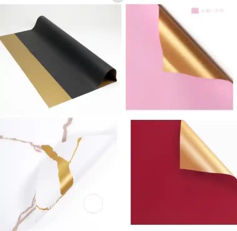 20 unidades de papel coreano en 4 diferentes colores y diseños. (Se envían 5 rojos, 5 negros, 5 blancos, 5 rosados) todos tienen algo de dorado en sus diseños. Medida de cada hoja 58x58cm