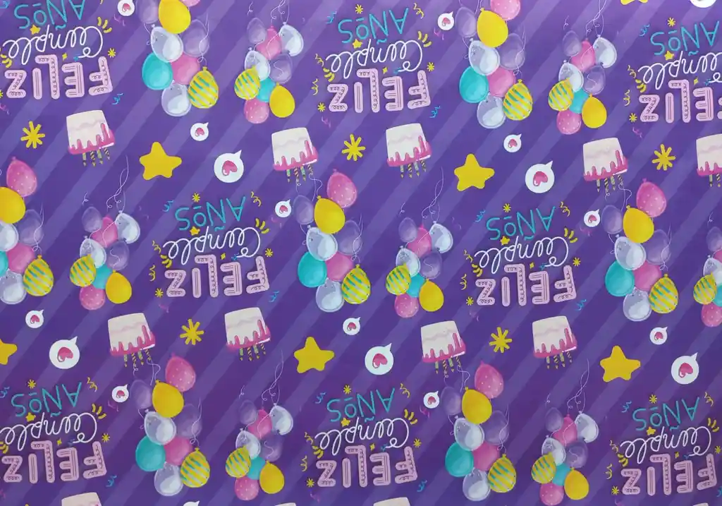 PAPEL DE REGALO EN PLIEGO - FELIZ CUMPLEAÑOS MORADO