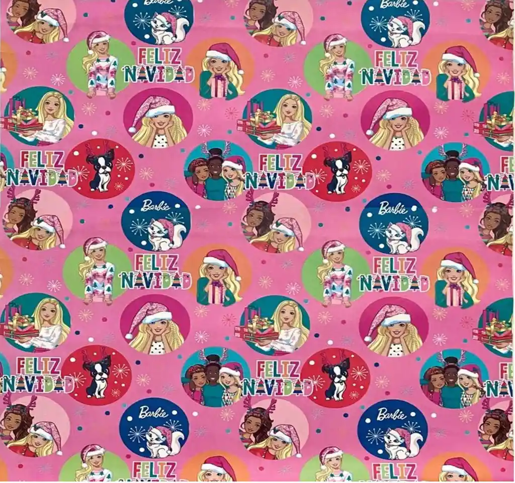 🎁Papel De Regalo Motivo Barbie Con Mensaje de Feliz Navidad Se Envian 2 UNIDADES Medidas: 48cm x 68cm