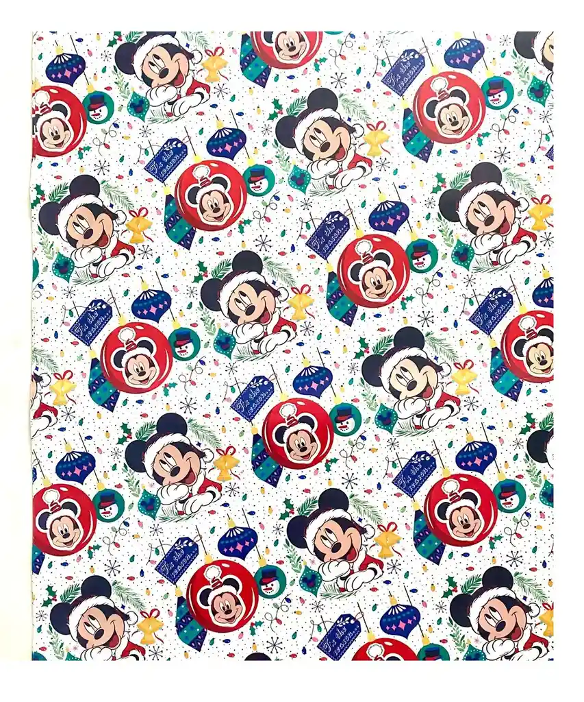 Papel De Regalo Motivo Mickey Mouse Navideño Se Envian 2 UNIDADES Medidas: 48cm x 68cm