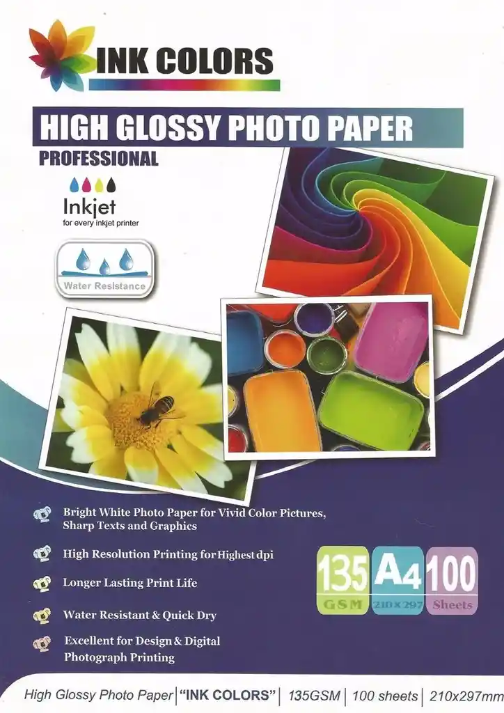 Papel fotográfico Brillante 135 Gr A4 x 100 hojas.