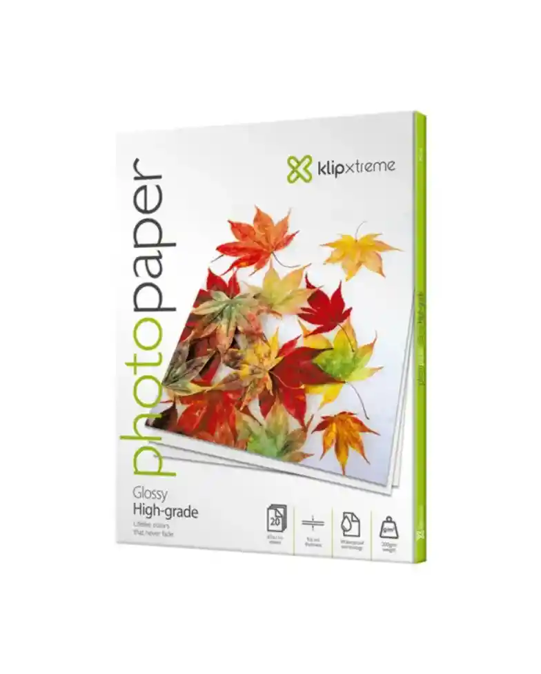PRODUCTO: Nombre: Papel fotográfico Acabado brillante Klip Xtreme KPG-120 Blanco Marca: Klip Xtreme Descripción: Descripción: Este papel fotográfico de alta calidad ha sido concebido para reproducir imágenes fotográficas con un realismo excepcional. Especialmente formulado para funcionar con impresoras de inyección de tinta, este papel tamaño carta se caracteriza por su suave acabado brillante, el cual acentúa los colores además de realizar hasta el más mínimo detalle captado en cada foto. Características principales: -"Resistente capa impermeable -Papel de primera calidad produce imágenes definidas y nítidas sobre una superficie brillante -Ideal para posters, retratos familiares y ampliaciones -Evita la formación de manchas y marcas cuando se toca o manipula -Compatible con la mayoría de las impresoras de inyección de tinta -Especificaciones: -Nivel de brillo (ISO) : 96±2% -Opacidad : 0.96 -Calidad : 200 gr/m2 -Cantidad: Paquete de 20 hojas -Tamaño: 21,6x27,9cm" Peso del paquete: 0.36287389600000003 kg Medidas: 27.889200000000002 x 21.59 x 71.60260000000001 cm Material: Papel