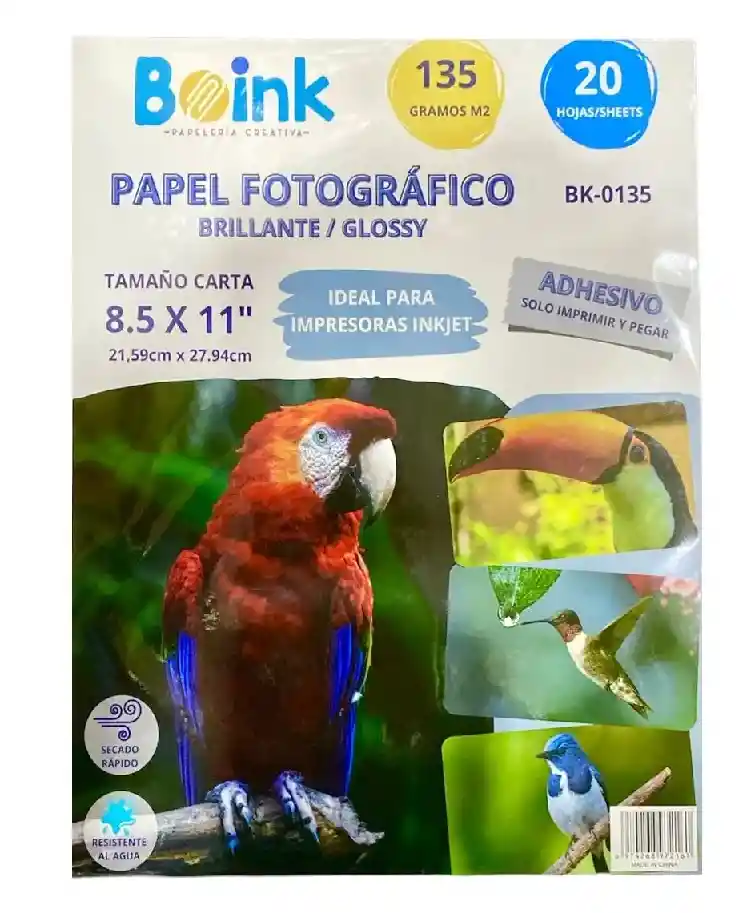 Papel Fotografico Adhesivo brillante 135 gms x 20 hojas, idela para impresora inkjet, tamaño carta 8.5 X 11" (21.59 CM X 27.94 CM)