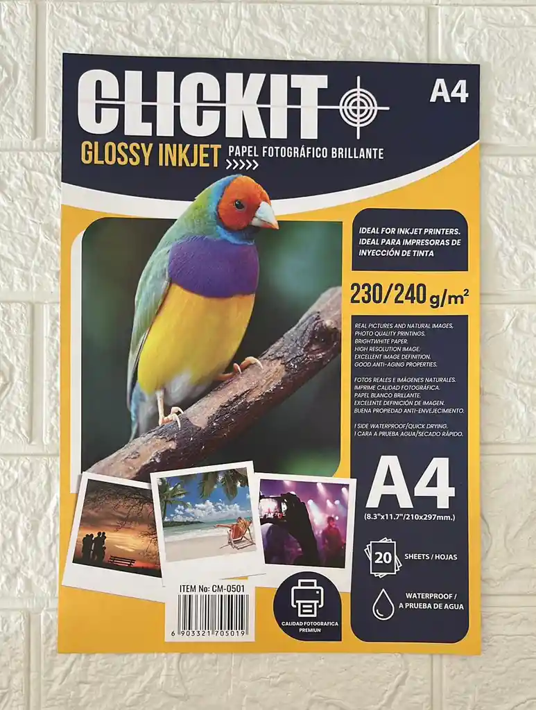 Papel Fotografico Clickit 230/240g X20 Unidades