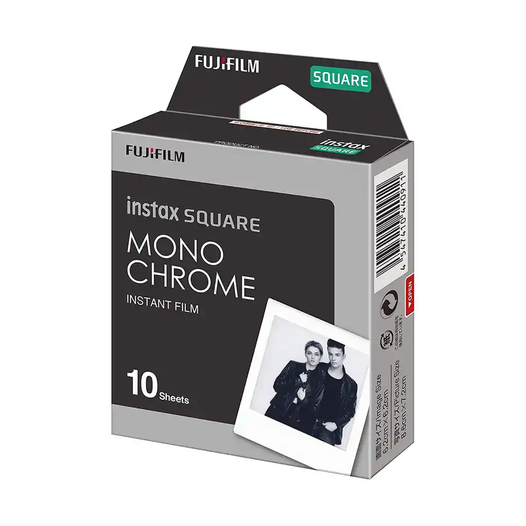 - Formato cuadrado - Para cámaras instax SQUARE - Bordes de marco blanco, foto en blanco y negro - Área de imagen de 6,2cm x 6,2cm - Tamaño de impresión de 8,6cm x 7,2cm - Excelente nitidez y estructura de grano - ISO 800 - Caja x10 films