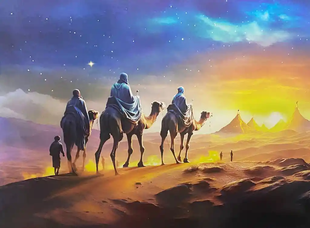 Papel Para Fondo de Pesebre En Pliego - Camellos Y Tres Reyes Magos