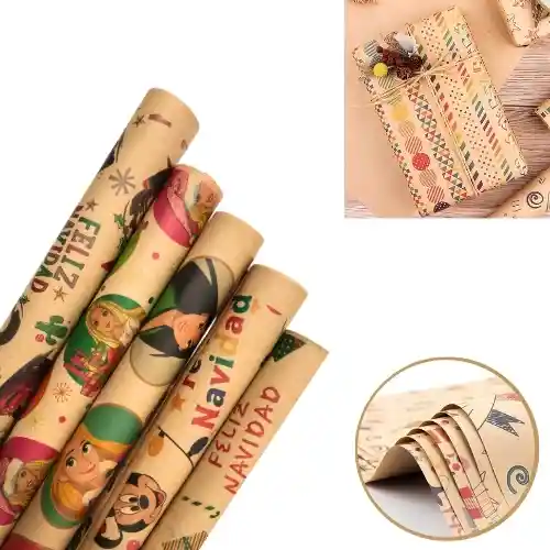 🎄 Dale un toque especial y encantador a tus regalos con este papel para regalo kraft navideño Disney. Incluye 5 diseños surtidos con temática de Navidad y primavera, ideales para envolver obsequios de manera creativa, ecológica y elegante. Fabricado en papel kraft resistente, perfecto para regalos, empaques, manualidades y decoraciones navideñas.