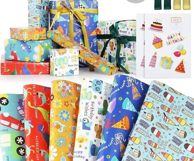 El papel de regalo es un tipo de papel decorativo diseñado específicamente para envolver obsequios, añadiendo un toque estético y de misterio a un presente. Se caracteriza por su amplia variedad de colores, diseños y texturas, adaptándose a diferentes ocasiones y preferencias.