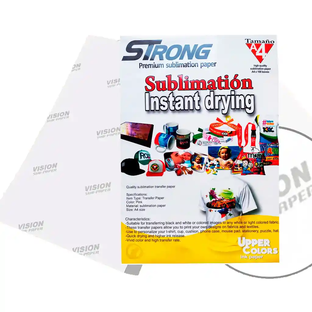 Papel sublimación de alta calidad. de secado INSTANTANEO recomendado para impresoras Epson de alta resolución, artículos en poliéster para sublimación especial para usar en poliamida o artículos de preparación para poliester.100 gr x 100 hojas ( 21 cm x 29,7 cm)Alta resolución 5760 DPIsecado lento, transferencia 95 al 98 %transferir a las imágenes de calor sobreSuperficies en poliéster. Cerámica. Textil.Madera - Pvc, Etc.*Perfecta adherencia y transferencia*La mejor calidad a un precio inmejorable ( importadores Directos )*Resma de 100 hojas*Papel Koreano marca STRONG ( ST )
