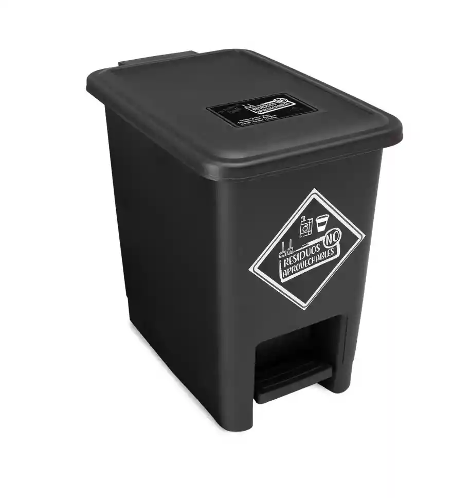 PAPELERA DE 8 LITROS RECTANGULAR CON PEDAL COLOR NEGRO CARACTERÍSTICAS -Caneca plástica nueva de capacidad 8 litros -Material polipropileno -Canecas marcadas con tipo de residuo a depositar -Rectangular -Tapa con sistema de apertura de pedal -Marca Luxury -Peso 0.619 kgs -Medidas: Alto 27.5cms, Ancho 19 cms, Largo 29.5 cms CONTENIDO DE LA COMPRA: Una papelera rectangular de 8 litros con pedal color negro