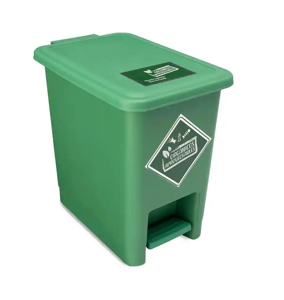PAPELERA DE 8 LITROS RECTANGULAR CON PEDAL COLOR VERDE CARACTERÍSTICAS -Caneca plástica nueva de capacidad 8 litros -Material polipropileno -Canecas marcadas con tipo de residuo a depositar -Rectangular -Tapa con sistema de apertura de pedal -Marca Luxury -Peso 0.619 kgs -Medidas: Alto 27.5cms, Ancho 19 cms, Largo 29.5 cms CONTENIDO DE LA COMPRA: Una papelera rectangular de 8 litros con pedal color verde