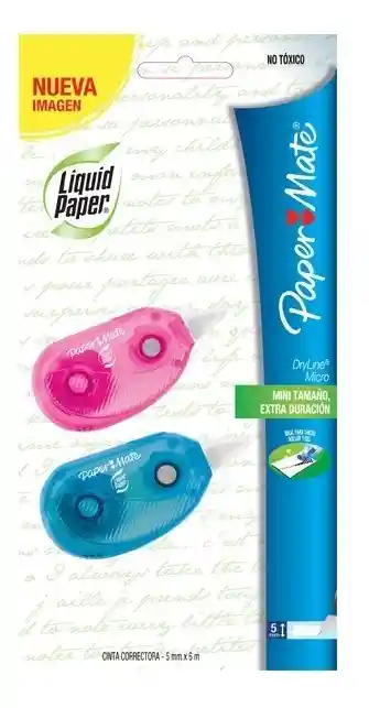 Corrector en cinta Paper Mate, corrige errores en forma rápida y sencilla. Formulado para papel bond y otros papeles blancos de acabado brillante.